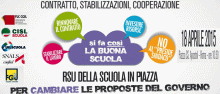 Saranno proprio i rappresentanti delle RSU i protagonisti della giornata, alternandosi sul palco con i segretari generali dei sindacati per ribadire con forza le richieste su cui da settimane il mondo della scuola è mobilitato:- no a modelli di gestione autoritaria che stravolgono i principi di un’autonomia fondata sulla collegialità, la cooperazione e la condivisione;- subito un piano di assunzioni che assicuri la stabilità del lavoro per tutto il personale docente e ATA impiegato da anni precariamente;- organici adeguati al fabbisogno, per un’offerta formativa efficace e di qualità;- rinnovo del contratto scaduto da sette anni per una giusta valorizzazione del lavoro nella scuola;- no a incursioni per legge su materie soggette a disciplina contrattuale, come le retribuzioni e la mobilità del personale;- avvio di una strategia di forte investimento su istruzione e formazione, recuperando il gap che separa l’Italia dagli altri paesi europei.Alla “vera scuola” presente in piazza SS. Apostoli Governo e Parlamento devono prestare attenzione e ascolto: non sono buone riforme, non è “buona scuola” quella fatta di progetti costruiti senza o contro i lavoratori che saranno chiamati a metterli in atto. Questo il segnale che i sindacati intendono lanciare con questa iniziativa, tappa importante di un percorso di mobilitazione che non si concluderà certamente con la manifestazione di domani.Il programma della giornata prevede il concentramento dei partecipanti a piazza SS. Apostoli per le ore 10,30, quando prenderanno il via gli interventi dal palco.Roma, 17 aprile 2015